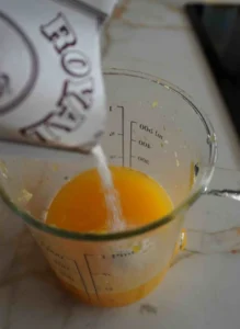 - Exprimes las naranjas y reservas el zumo (agregar endulzante opcionalmente).