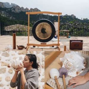 Pero la estrella del día fue, sin duda, el Baño de Gong a cargo de la increíble Raquel, de @raquel.saludintegrativa. Ella nos sumergió en un mundo de vibraciones y sonidos que, sinceramente, es difícil de describir con palabras. «Imagínate bañándote en sonido, desde la punta de los pies hasta lo más alto de la cabeza», nos decía Raquel. Y así fue, una experiencia casi mística que nos tocó el alma, liberando tensiones que ni sabíamos que teníamos.
